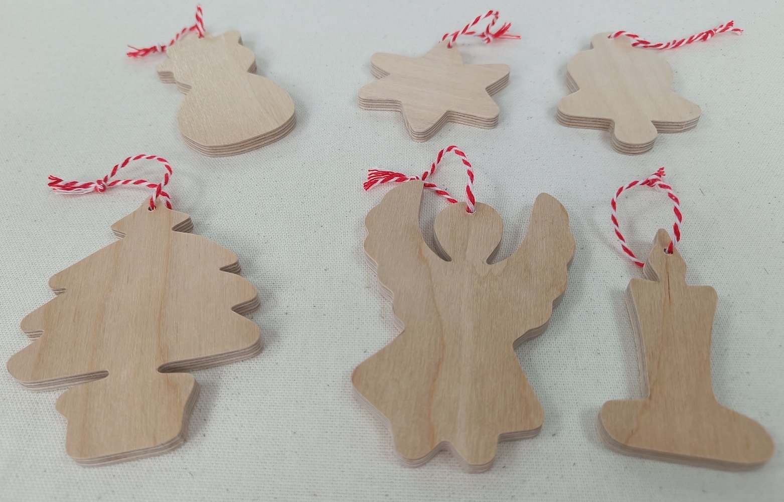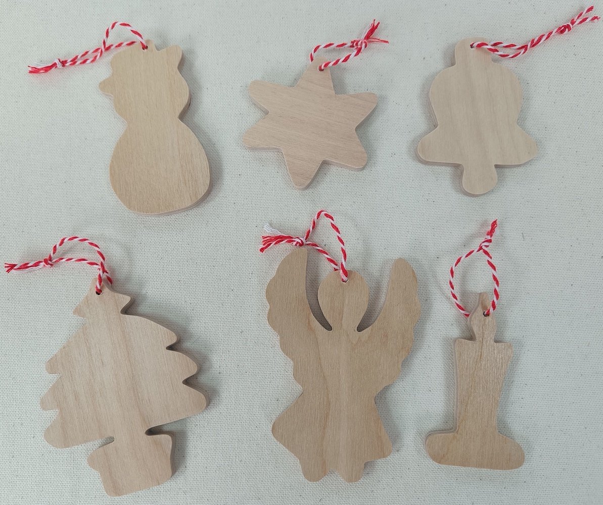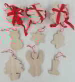 • A set of 6 natural wood Christmas Decorations for your little one to paint, colour and decorate - Or leave them natural if you prefer a more neutral colour palette in your home